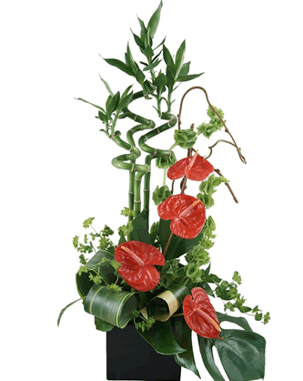Yeşilliklerle süslenmiş kırmızı antoryum ve beyaz lilyumlardan oluşan ferforje açılış,düğün,davet,tören çiçeği kırmızı beyaz tüllerle süslenmiş ve renk katılmıştır.Sevdiklerinizin en özel günlerinde onlara desteğinizi çiçeklerle hissettirin.